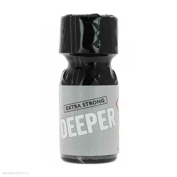 Poppers speciálně přizpůsobený pro usnadnění penetrace, análního sexu. Výkonný produkt se 100 % amylem. Svou silou přesvědčuje o své kvalitě již mnoho let. Tento stimulant, jak fyzický, tak sexuální, je silným disinhibujícím a silným afrodiziakum; oblíbeným u milovníků penetrace (anální nebo vaginální); tento amyl poppers je nesrovnatelný svalový relaxant a jeho vazodilatační účinek je jedinečný; jeho působení na měkké tkáně (vagina, konečník) pomáhá podporovat průnik bez bolesti. Poppers Deeper anal penetration 13 ml extra strong. Dodáván v balení 13 ml, o obsahu 10 ml. Složení: Amyl Nitrite CAS 110-46-3